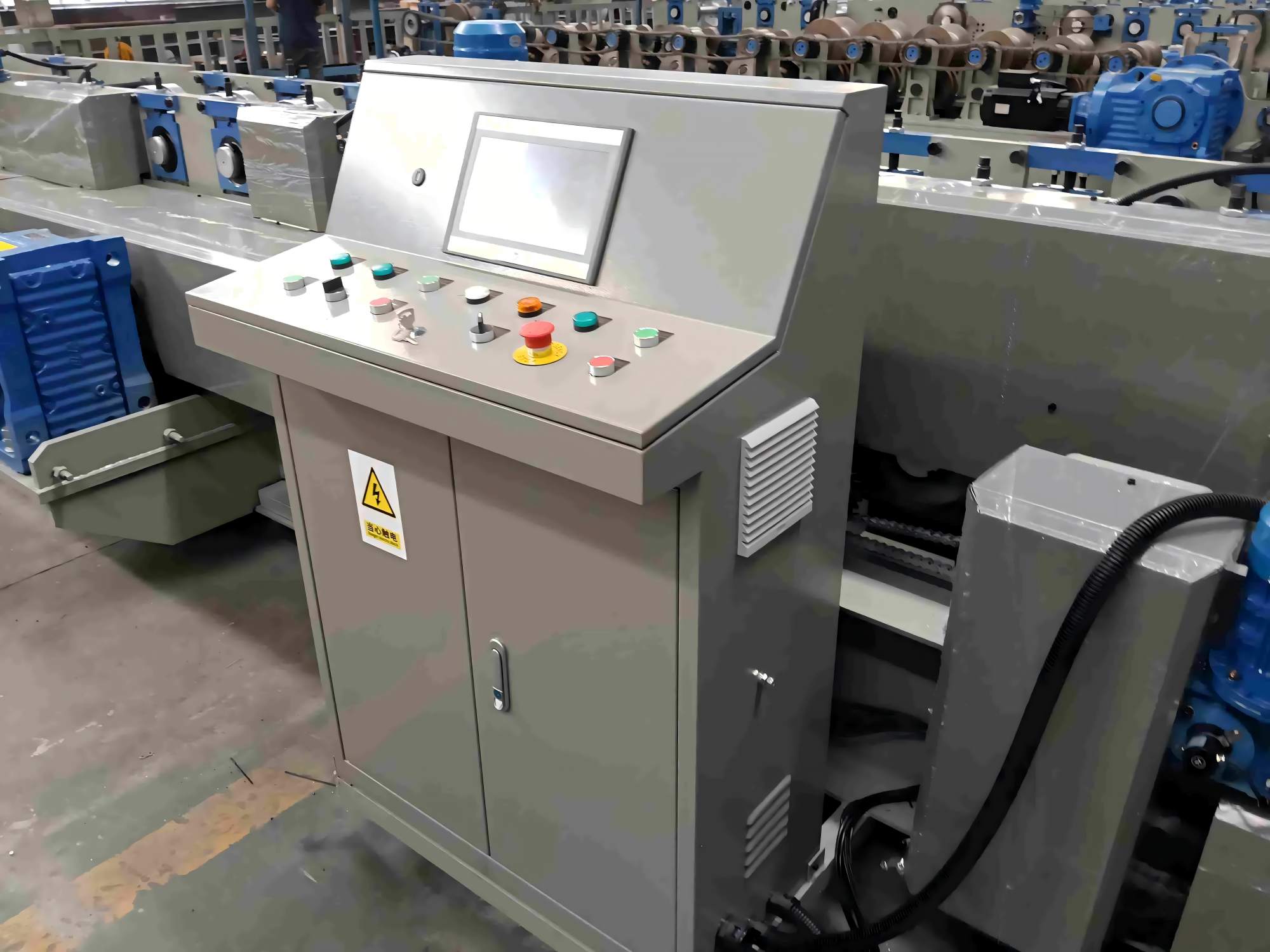 Kabinet kontrol PLC: Delta PLC + encoder Omron, pengoperasian layar sentuh, kesalahan panjang ±2mm, mendukung bahasa Mandarin dan Inggris, tiga fase 380V/50HZ (dapat disesuaikan).